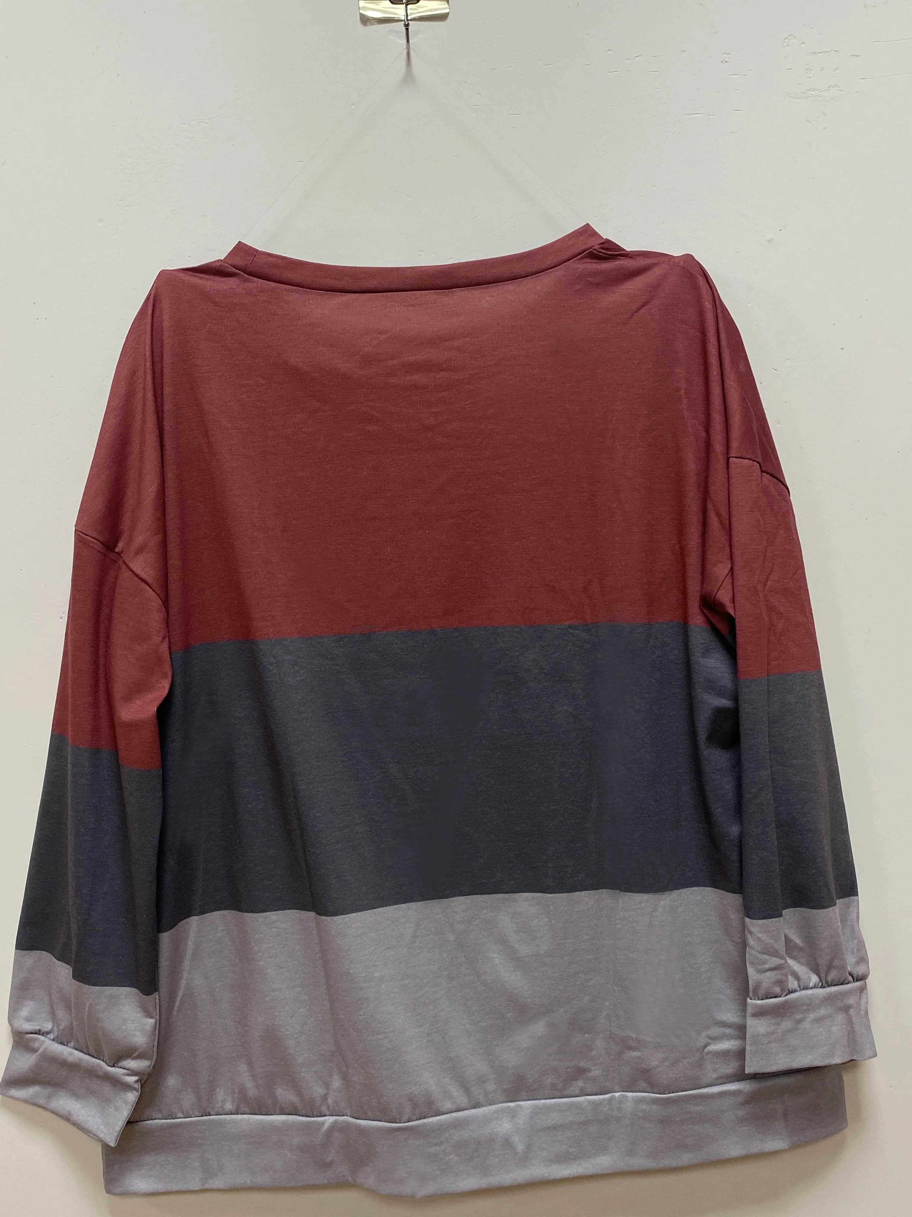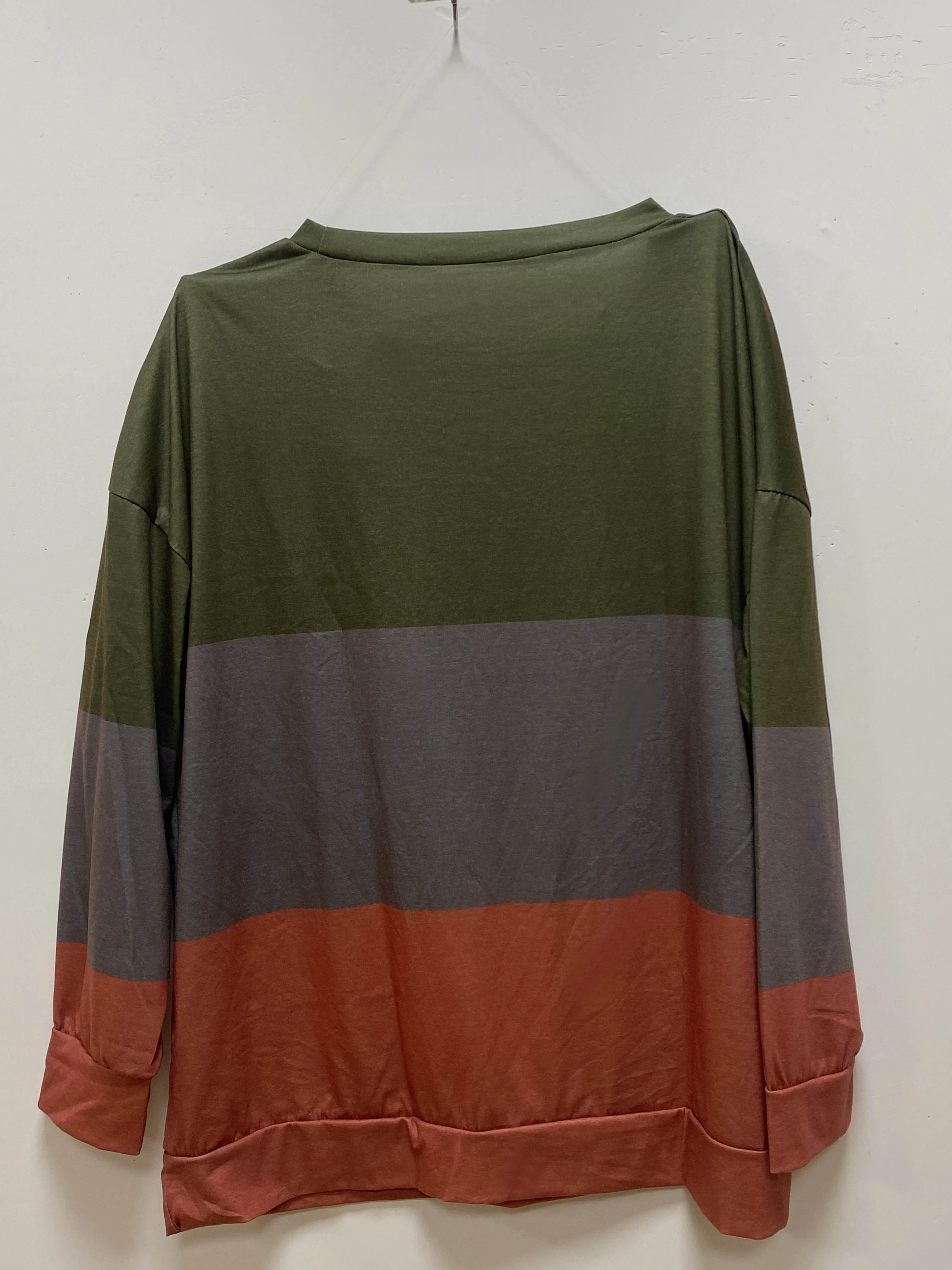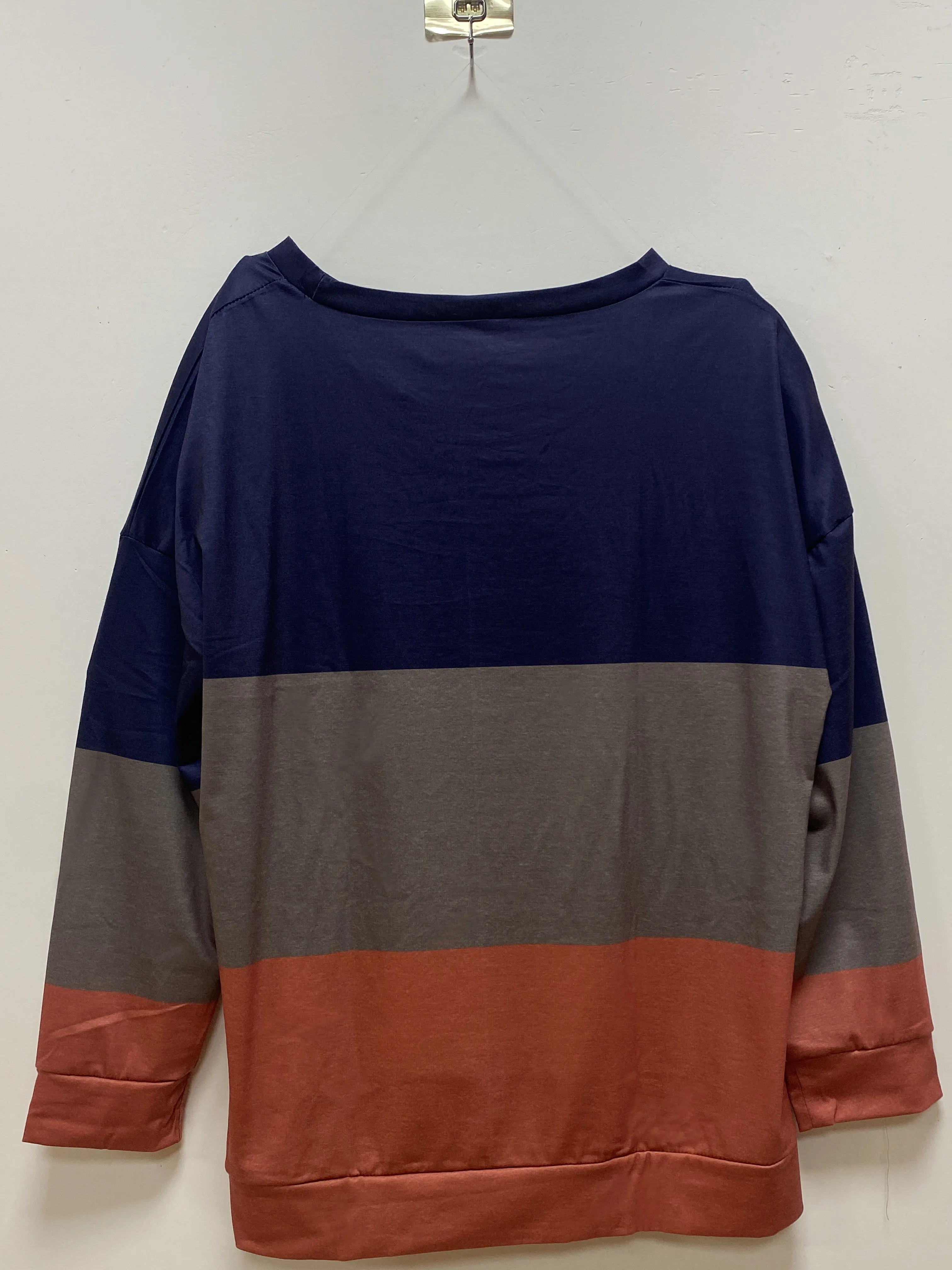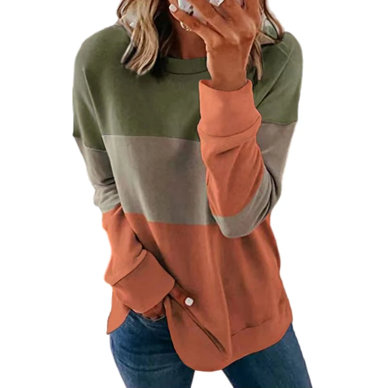 Big Size Women's Casual Long Sleeve Round Neck Colorblocking T-Shirt