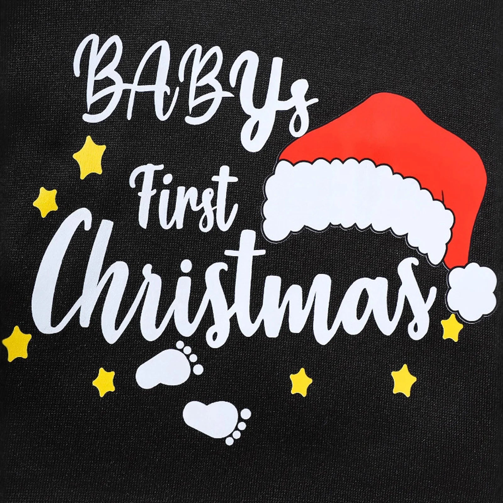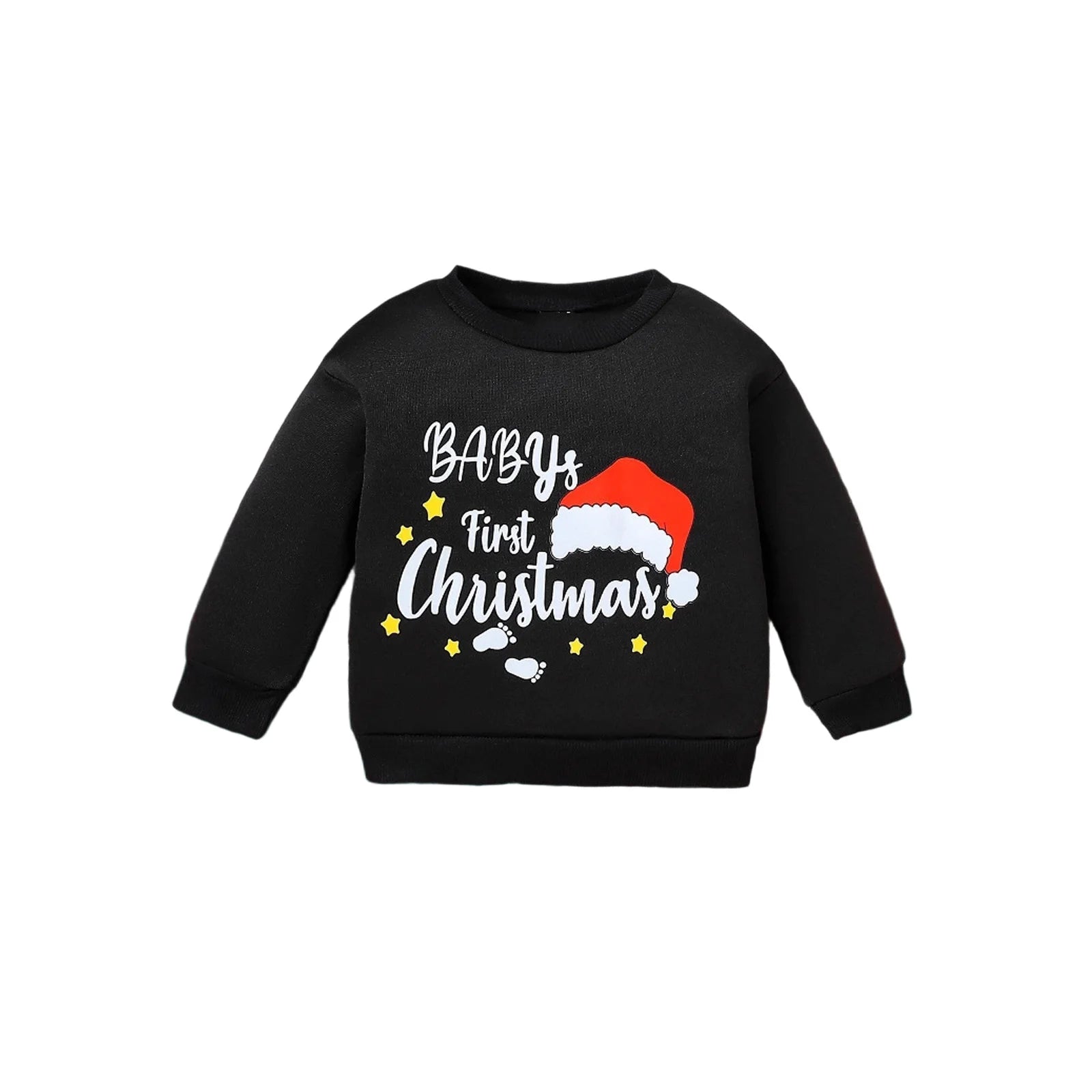 Christmas Sweatshirt for Toddler Baby Girl and Boy Letters Santa Hat Print Pullover Crew Neck Long Sleeve Tops