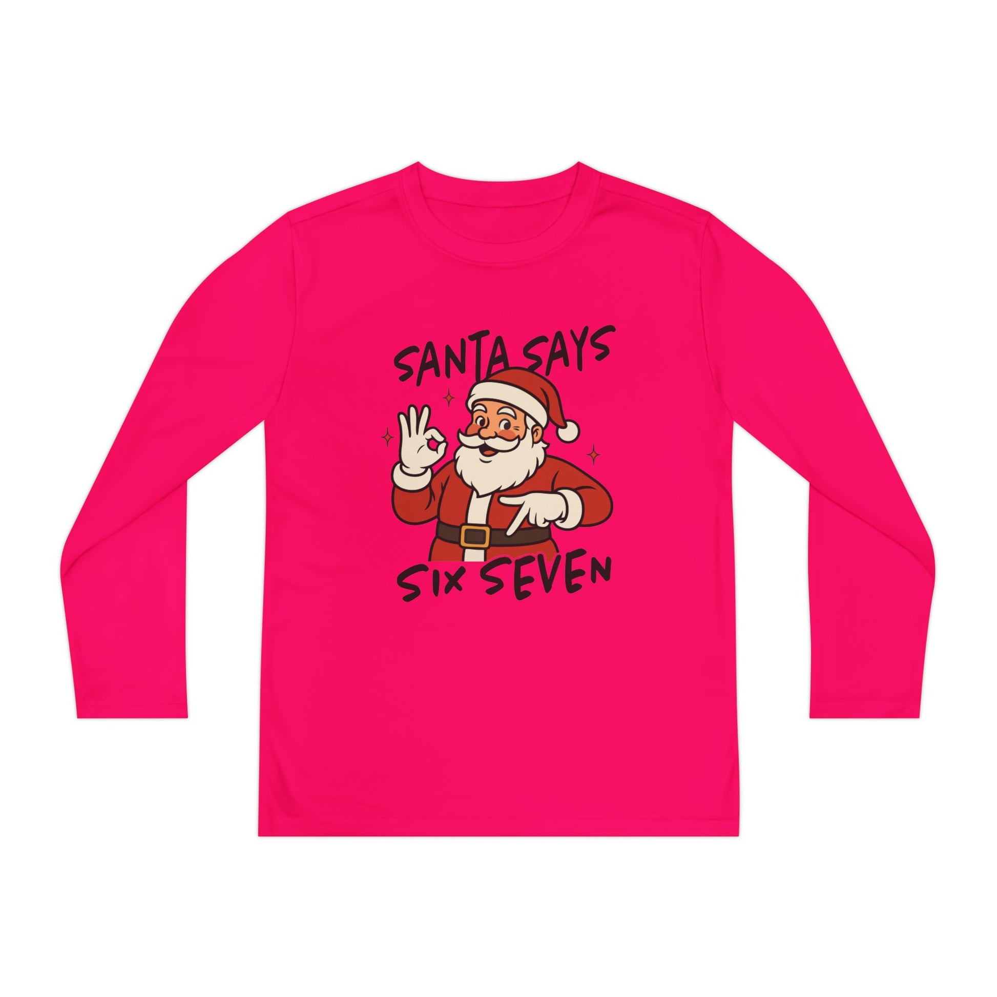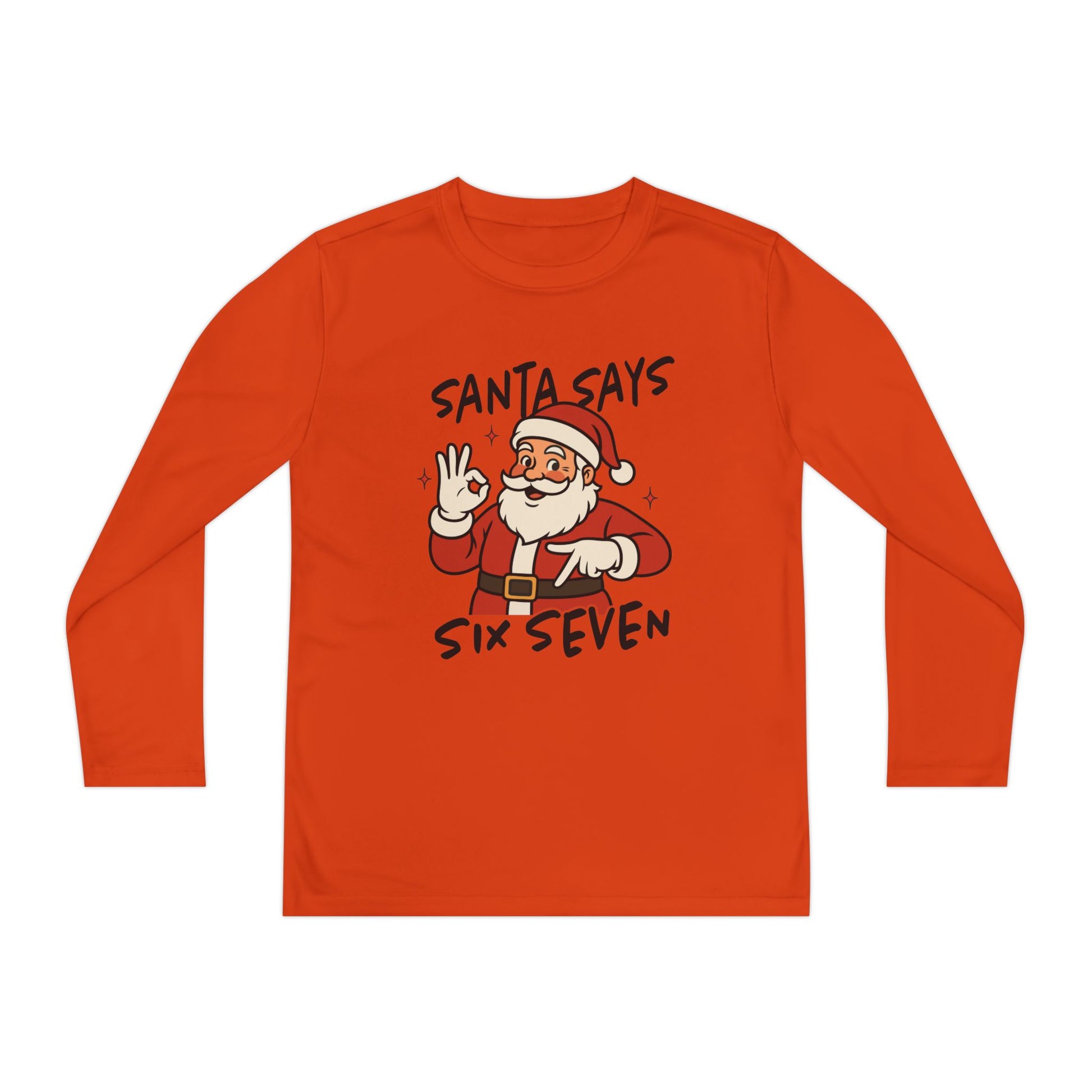 Santa Says Six Seven Kids Long Sleeve Tee — Funny Christmas Youth Shirt