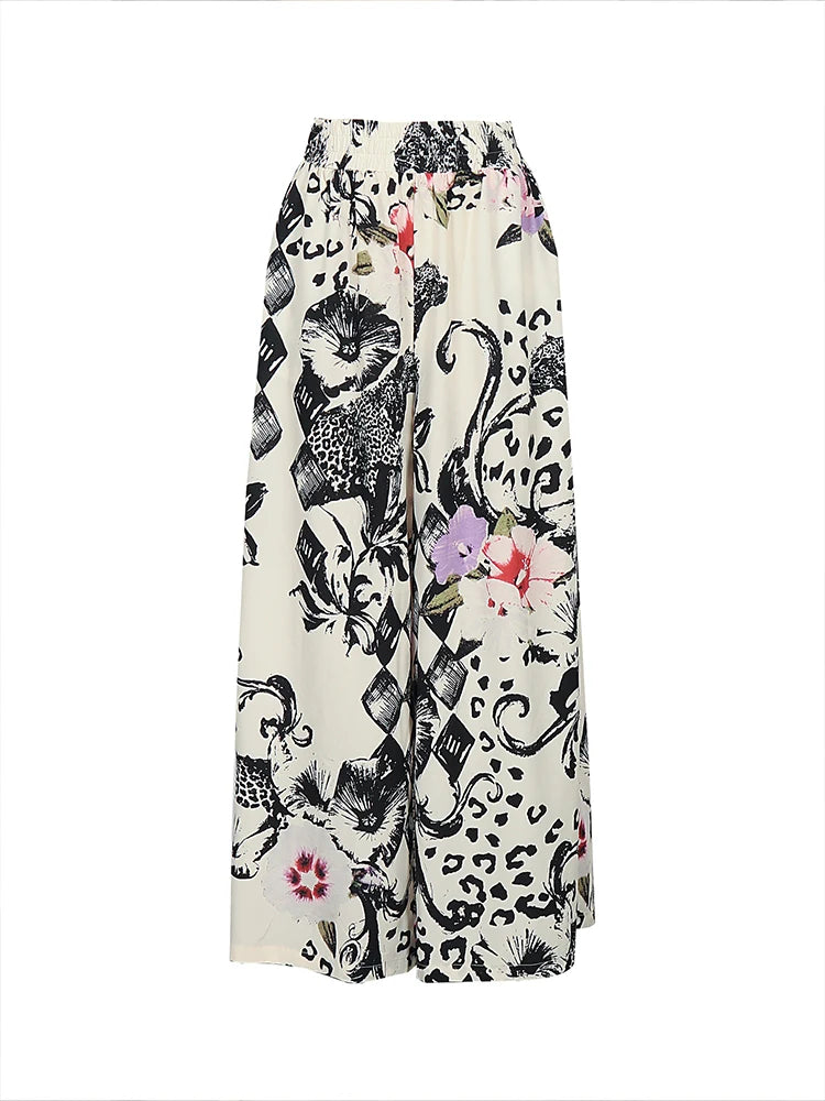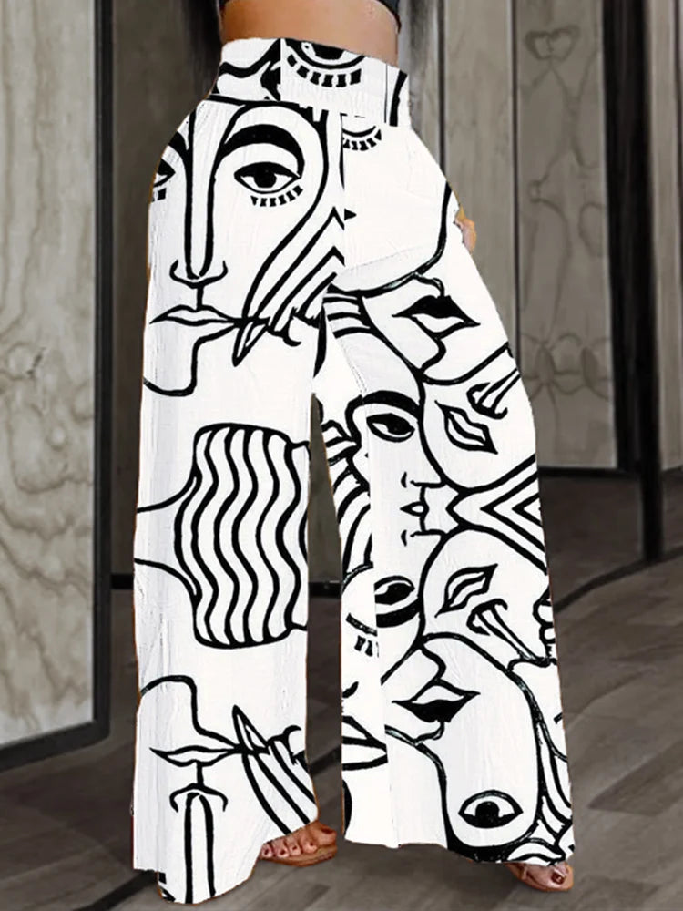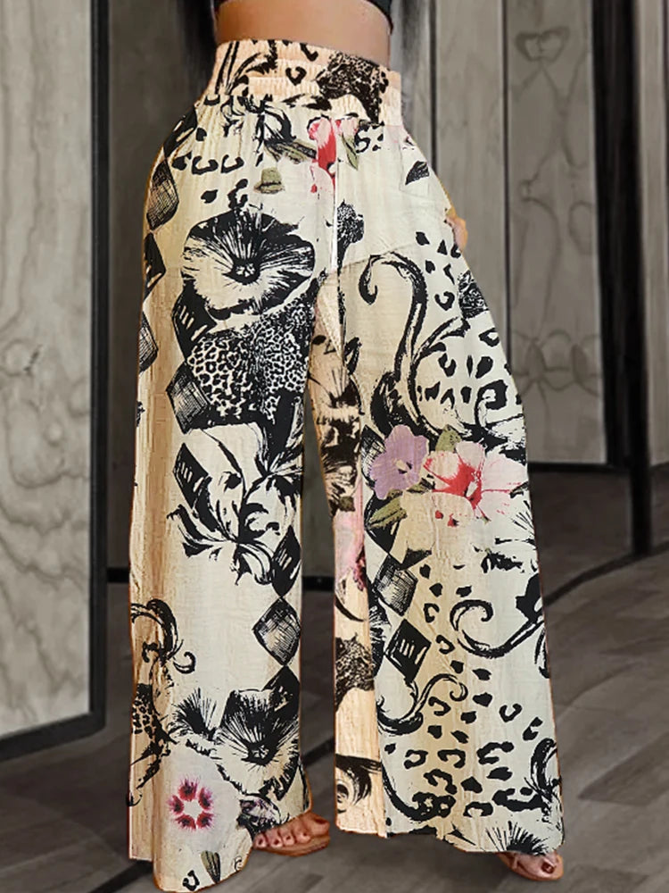 Summer plus Size 5XL Wide Leg Pants Contrast Print Pattern Fashionable Trendy Versatile Women's Elastic Waist Casual Trousers